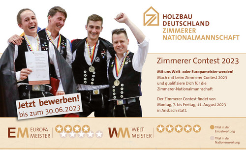 Wer Weltmeister werden will, ist hier richtig: Der Zimmerer Contest 2023 ist der erste Schritt auf dem Weg zum Titel. Denn dabei wird entschieden, wer in die Zimmerer-Nationalmannschaft aufgenommen wird.