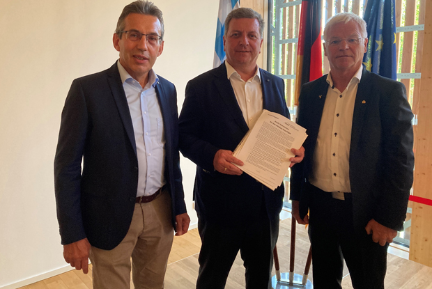 Bei einem Treffen am 7. Juli zwischen Peter Aicher, LIV-Präsident, und Erwin Taglieber, Präsident Deutscher Holzwirtschaftsrat und LIV-Präsidiumsmitglied, mit Christian Bernreiter, Staatsminister im Bayerischen Staatsministerium für Wohnen, Bau und Verkehr übergaben die beiden Verbandsrepräsentanten das Positionspapier „Akute Hemmnisse für den Holzbau beseitigen“ vom Deutschen Holzwirtschaftsrat (DHWR).